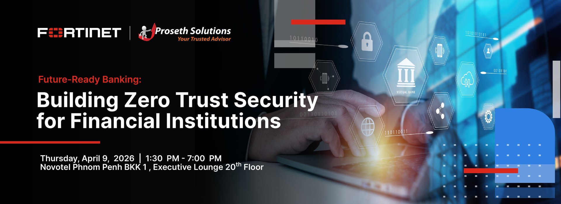 Join Fortinet and Proseth Solutions for an exclusive small-group event to learn how banks can adopt a Zero Trust approach with ZTNA, network access control, and secure web gateways - protecting users, devices, and critical systems while ensuring compliance and operational efficiency, with practical insights from real-world banking use cases.